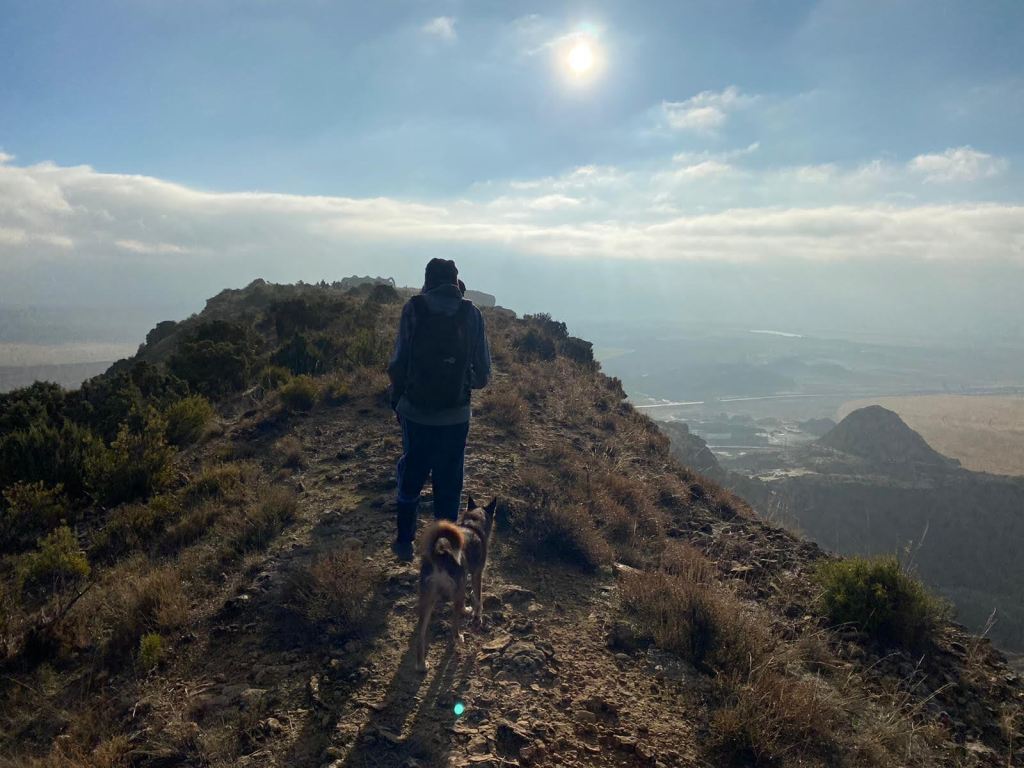 Hala y unas cuantas fotos y selfies después, con la faena hecha, cara abajo. Pensabais que se acaba aquí, no, quedaba una sorpresa, abajo, al lado de las balsas de riego se montó un pica-pica para celebrar las 100 salidas de este grupo de senderismo, un ágape que vino muy bien para reponer fuerzas y echar unas risas que daban muestra del buen ambiente que se respira siempre en este grupo. Aunque eso sí, hubo una moción que se secundó por unanimidad, la próxima vez un poquer más de cava, que alguno se quedó con sed J.
