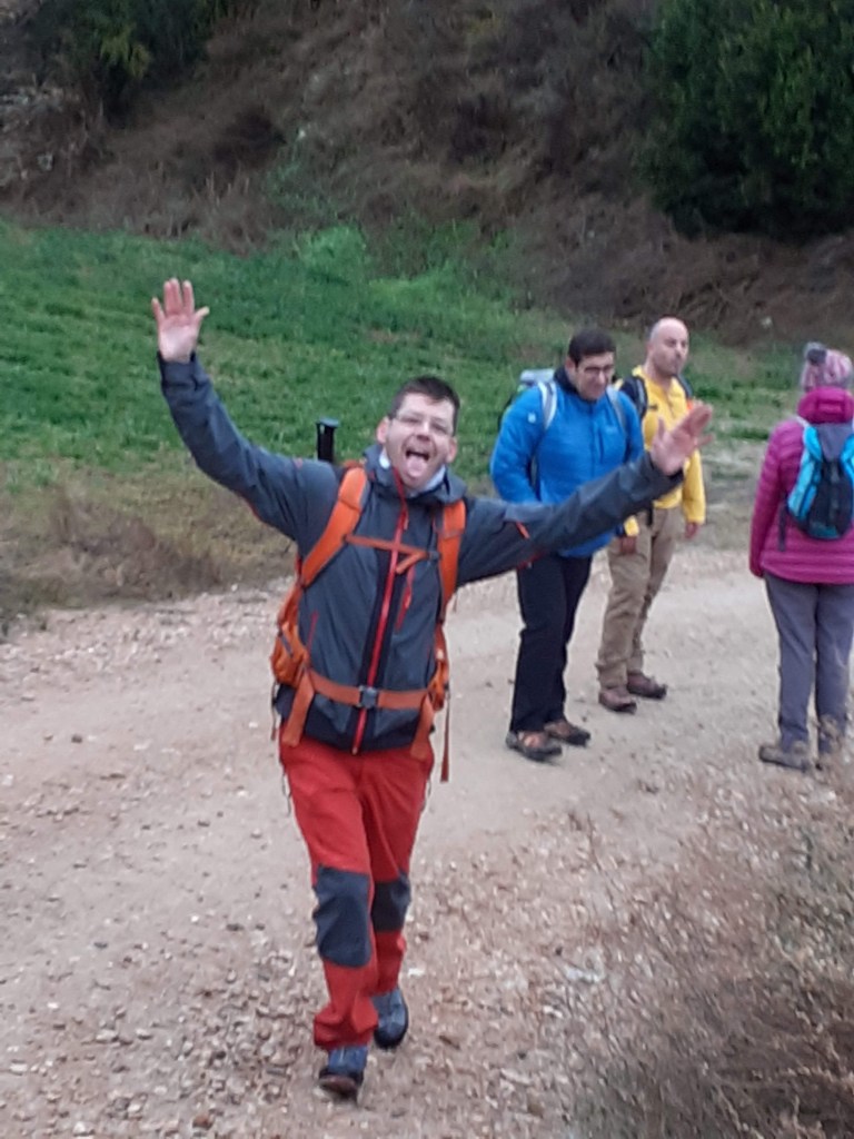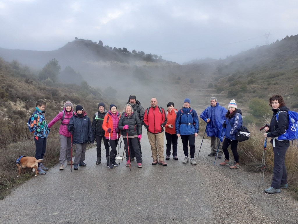 A pesar de las malas previsiones meteorológicas un grupo de 15 senderistas decidimos poner buena cara al mal tiempo y disfrutar de una estupenda excursión de 13,35 km y 274 m. de desnivel por la Sierra de Alcubierre. En total unas 3,5 h que partiendo desde la conocida como Ruta Orwell nos ha permitido disfrutar de un paisaje espectacular: pinos, robles, coscojos, lentisco, salvias, muérdago, romero (algunos ya en flor), tremoncillos